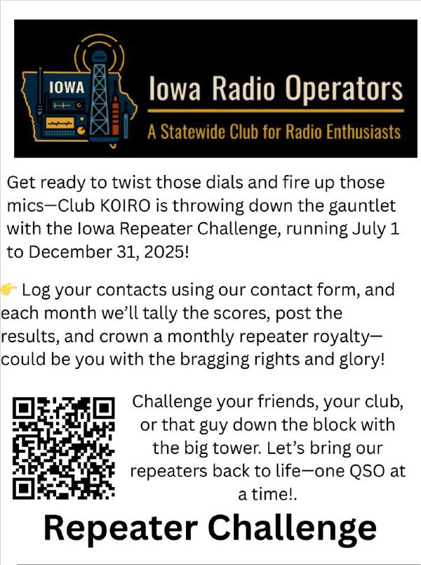 The month of August is already off to a great start for the K0IRO Repeater Challenge! Jason as put together a flyer that can be cut up and shared with others! Lets keep this up!