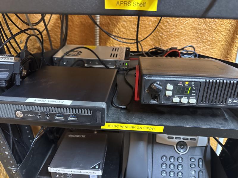 The current setup at the time of this writing is based on a Motorola Maxtrac connected to a Microsat WX3in1. The WX3in1 is acting not only as a digipeater, but also as an iGate to the internet. Don’t laugh too loudly at the mess I made putting this together, but this is what it looks like for the nerds who are generally curious!